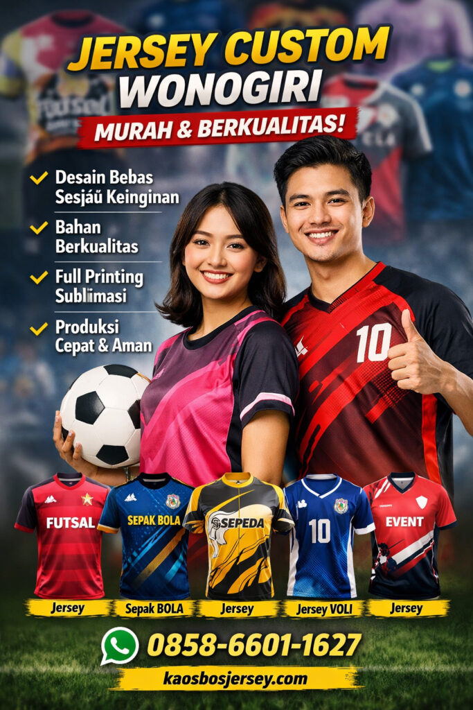 Bagi Anda yang sedang mencari jersey custom Wonogiri dengan kualitas terbaik dan harga terjangkau, Kaos Bos Jersey hadir sebagai solusi terpercaya untuk pembuatan berbagai jenis jersey olahraga maupun komunitas. Dengan pengalaman dalam produksi jersey custom, kami menyediakan layanan desain bebas, bahan berkualitas, serta hasil printing yang tajam dan tahan lama.